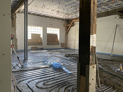 Die frisch verlegten Fußbodenheizungsschleifen im Atelier des Kühlschiffs. |