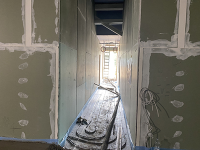 15.07.2021 Fußbodenheizung und Estricharbeiten im Veranstaltungsraum des Kühschiffs. |