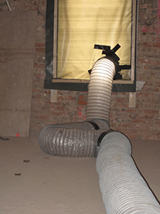 20.02.2018 Bei der maschinellen Enfernung von alten bleihaltigen Anstrichen auf den gusseisernen Säulen im Brau- und Malzhaus sind besondere Schutzmaßnahmen notwendig, damit die belasteten Schleifstäube nicht in die Umwelt gelangen. |
