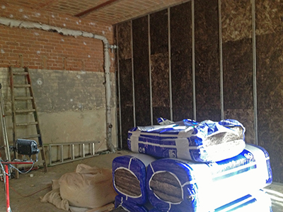 Trennwand mit Dämmmaterial zwischen den beiden Ateliers im Pferdestall EG.
