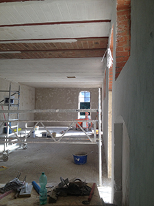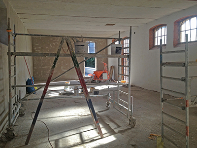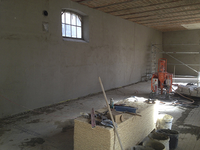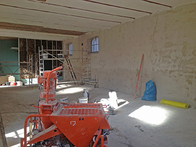 Verputzarbeiten im großen Atelier des Pferdestall EG.