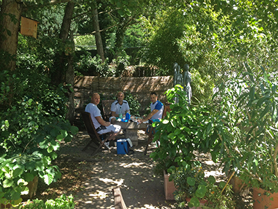 Im Garten dahinter am Pferdestall: Mittagspausen-Idyll für die Arbeiter.