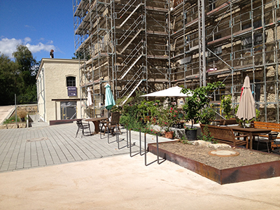 18.08.2020 Pflaster- und Einfassungsarbeiten an der Abfahrt zum Malzhaus und zwischen Sudhaus und Mühlengebäude. |