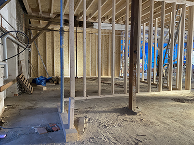 12.11.2020 Holzständerkonstruktion für die Zwischenwände im Kühlschiff. |
