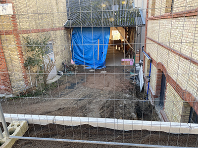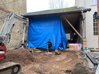 24.11.2020 Vorbereitung des Untergrundes vor dem Kühlschiff (der ehemaligen "Scheune"). |