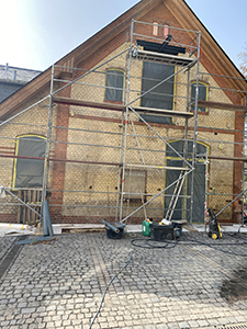 03.03.2021 Einrüstung der Giebelfassade des Pferdestalls. |