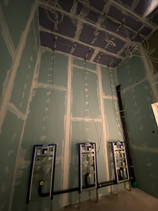 Erste Installationen in den WC-Anlagen der Veranstaltungsräume im Kühlschiff. |