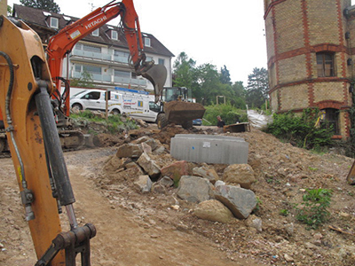 12.05.2017 Tiefbauarbeiten im Bereich zwischen Haus Esch, Sud- und Mühlenhaus. |