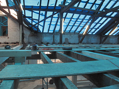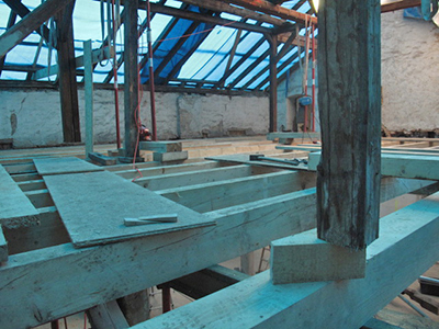Malzhaus Obergeschoss: Erneuerung der meisten Deckenbalken |