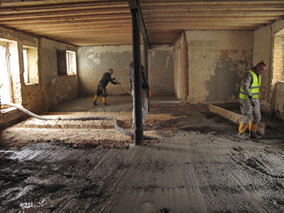 17.02.2017 Anlegen des Estrichs im EG des Mühlengebäudes. |