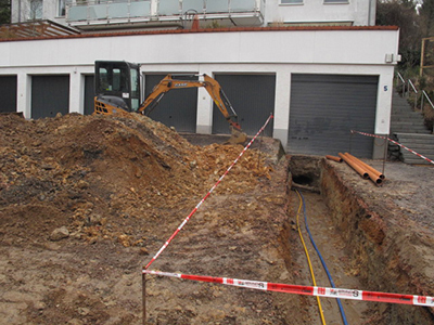 15.02.2017 Versorgungsgraben und Anschlussarbeiten an das städtische Netz im Bereich der Walkmühlstraße und oberen Zufahrt. |