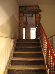 30.10.2016 Das Obergeschoss des Südflügels wurde um einen Teil des vormaligen Treppenhauses erweitert, ein neuer Türsturz gemauert. |