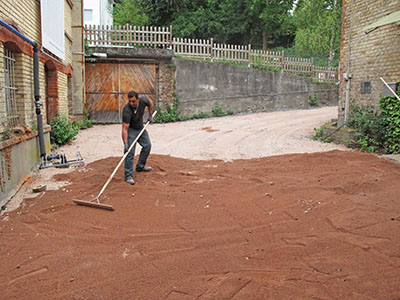 ... und verdichtet. Fehlen nur noch ein paar weiße Markierungen und ein Netz und der Tennisplatz ist fertig! |