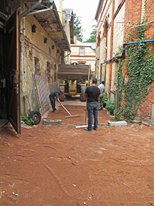 Feiner Splitt wird auf den Wegen rund um die Eingänge des Künstlervereins verteilt ... |