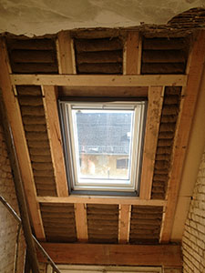 Beispielhafte denkmalgerechte Dämmung des Mühlenhausdaches mit Lehm. |