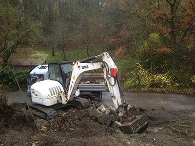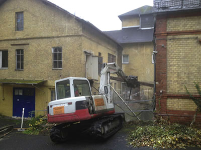 Aber es geht weiter: mit dem Abbruch des alten Dieseltanks an der unteren Zufahrt ...