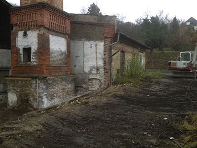 ... und der Anbau zwischen den Ateliers von Edgar Diehl und Wulf Winckelmann wird abgerissen und dadurch erstmalig der interessant gemauerte Sockel des großen Schornsteins freigelegt-