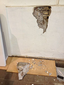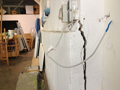 ... nach einem lautstarken "Touché" mit der Baggerschaufel stürzen Mauer- und Putzteile ins Atelier und in der Wand entstehen beängstige Risse.