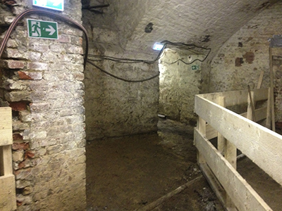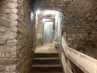 Keller des Brauhauses: Provisorischer Fluchtweg vom "Vinotto" ins Freie. |