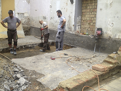 14.08.2018 Freilegung der Kellergewölbedecke im Bereich des abgebrochenen Brauhaus-Vorbaus. |