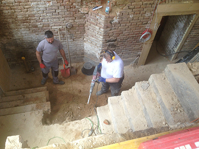 Innenhof vor dem Brauhaus: Letzte Abbrucharbeiten an der ehemaligen Treppe zwischen "Vinotto" und "Vinotto"-Toilette. |