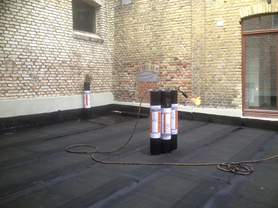 06.11.2018 Verlegung von Dachpappebahnen auf der Terrasse im Mühlhof. |