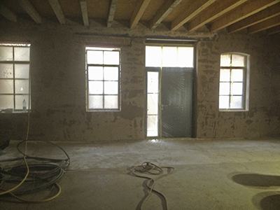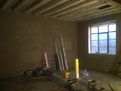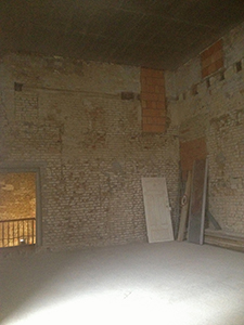 03.12.2018 Frisch aufgetragener Wandputz im künftigen Malzhaus-Atelier. |