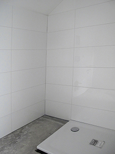 Teeküche und Dusche im Dachgeschoss Pferdestall. |