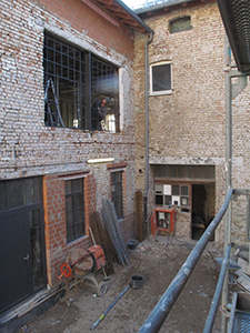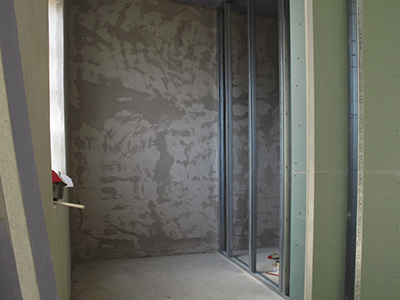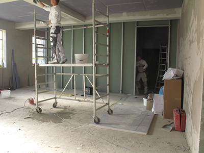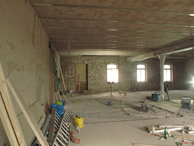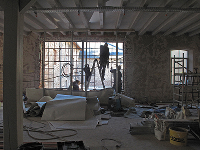 Putz- und Trockenbauarbeiten im künftigen Atelier im EG Malzhaus. |