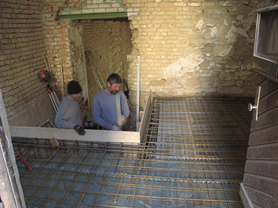Im Turm/Südflügel werden die Fundamente für die Treppe vorbereitet. |