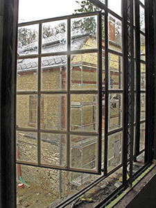 Malzhaus Obergeschoss: Trockenbauarbeiten und das neue Fenster jetzt mit Gläsern versehen. |