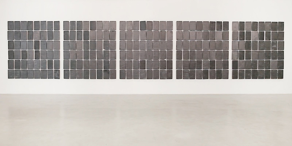 Auch die Kölner Klangkünstlerin Tina Tonagel war bereits mehrfach in der Walkmühle mit ihren Arbeiten, Performances und Workshops zu Gast. Ihre Klanginstallation Lithophon wurde erstmals im Neuen Kunstraum Düsseldorf gezeigt. Nun wird sie im Künstlerverein Walkmühle anlässlich der Ausstellung Und was, wenn es klingt? erneut realisiert. Grundlage ist eine eigens errichtete, etwa zehn Meter lange und drei Meter hohe Wand, auf der hängend weit über zweihundert Schiefertafeln in einer geometrischen Anordnung montiert sind. Jede der Schieferplatten kann über einen kleines, motorgetriebenes Hämmerchen angeschlagen und zum Klingen gebracht werden. Gesteuert werden diese Anschläge über einen Microcontroller, der mit einer etwa fünfzehnminütigen Komposition programmiert wurde und diese in einer Endlosschleife abspielt. Tonagels Installation ist insofern nicht nur ein klangliches sondern auch ein äußerst ästhetisches Erlebnis.