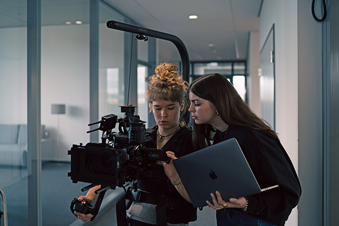 Der Bachelor-Studiengang Media: Conception & Production an der Hochschule RheinMain in Wiesbaden bildet junge Filmemacher*innen aus: Studierende lernen, relevante Inhalte zu entwickeln, audio-visuell zu gestalten und filmisch umzusetzen von der Idee zu einem Filmprojekt über die Planung und Produktion bis zur Postproduktion. Kreatives Arbeiten, Praxisnahe Projekte und technische Fertigkeiten stehen im Mittelpunkt, damit Absolventinnen in Agenturen, Produktionsfirmen, Medienhäusern oder als Freelancerinnen später in die Creative und Filmindustrie einsteigen können.